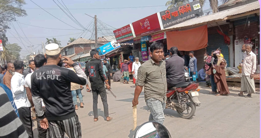 এ সময় কবির ফকিরের চাচাতো ভাই উপজেলা বিএনপির বহিস্কৃত আহবায়ক জালাল ফকিরের দুই ছেলে রাহাত ফকির ও ফরহাদ ফকিরের নেতৃত্বে তার লোকজন এসে বাঁধা দেয়। এ সময় দুই পক্ষের মধ্যে ধাওয়া পাল্টা ধাওয়ার ঘটনা ঘটে। এ ঘটনায় দুই পক্ষের মধ্যে উত্তেজনা বিরাজ করছে। এ ঘটনার জের ধরে ওইদিন দুপুরে সামসুল হক চৌকিদার ও কবির ফকিরের লোকজনের মধ্যে সংঘর্ষ হয়। দু’পক্ষের সংঘর্ষে চৌরাস্তা রণক্ষেত্রে পরিণত হয়।