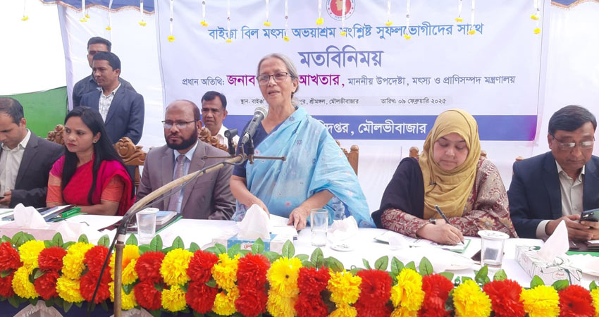 রবিবার (৯ ফেব্রুয়ারি) দুপুরে মৌলভীবাজারের শ্রীমঙ্গলে বাইক্কা বিল মৎস্য অভয়াশ্রম-সংশ্লিষ্ট সুফলভোগীদের সঙ্গে এক মতবিনিময় সভায় প্রধান অতিথির বক্তব্যে তিনি এ সব কথা বলেন।