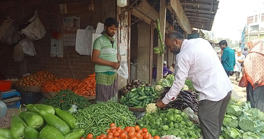 বর্তমানে প্রতি কেজি আলু ১৫ টাকা, বেগুন ১৫ থেকে ২০ টাকা, টমেটো ১০ টাকা, শিম ২৫ টাকা, বাঁধাকপি ৩ টাকা, ফুলকপি ১০ টাকা, ঢেড়স ৪০ টাকা, করলা ৮০ টাকা, গাজর ২০ টাকা, পেঁপেঁ ১৫ টাকা, লাউ ১০ থেকে ৩০ টাকা, মিষ্টি কুমড়া ২০ টাকা, শসা ২০ টাকা, পটল ৮০ টাকা, কাঁচা মরিচ ৩০ টাকা, পেঁয়াজ ৩০ টাকা, আদা ১২০ টাকা, রসুন ৭০ টাকা, ব্রয়লার মাংস ১৭০ টাকা, ছোলা ১০০ টাকা, চিনি ১২০ টাকা, মসুর ডাল ১০০ টাকা কেজি ও ব্রয়লার ডিম ১০ টাকা পিস দামে বিক্রি হচ্ছে। এছাড়া গরু-ছাগলের গোশত ও মাছের দামও স্থিতিশীল রয়েছে। যা সবজিতে গত বছর কেজিতে দাম ছিল দ্বিগুণ।