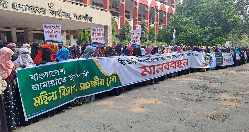 মাগুরার ধর্ষণ ও হত্যার প্রতিবাদে সাতক্ষীরায় মহিলা জামায়াতের মানববন্ধন