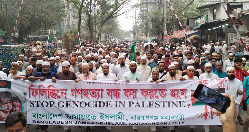 ইসরাইল কর্তৃক ফিলিস্তিনে বর্বরোচিত, নির্মম গণহত্যা বন্ধের দাবীতে নারায়ণগঞ্জে বিক্ষোভ মিছিল ও সমাবেশ অনুষ্ঠিত হয়েছে।