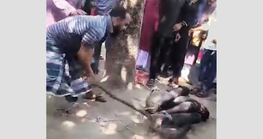 জানা গেছে, বেশ কয়েকদিন আগে উপজেলার মোমিনপুর ইউনিয়নের হয়বৎপুর খোড়াখাই নজের পাড়া গ্রামের জয়নাল আবেদীনের ছেলে মঞ্জুরুল ইসলামের বাগান থেকে বেশ কিছু সুপারী চুরি হয়। ঈদের দিন সকালে, স্থানীয় যশাই মোড় থেকে সাইকেলযোগে নিজ বাড়ি ফিরছিলেন একই এলাকার আমজাদ আলীর ছেলে রবিউল ইসলাম কালু। এ সময় সুপারী চুরির অপবাদ দিয়ে ওই যুবকের গতিপথ রোধ করে মৃত থেলু মিয়ার ছেলে মোছাদ্দেকুল ইসলাম (৫৫), তার ছেলে নিশাত (৩০), চুনু মিয়া (৫০) সহ বেশ কয়েকজন তাকে তাদের বাড়িতে নিয়ে যায়। সেখানে রশি দিয়ে গাছের সাথে বেঁধে মারপিট করা হয়।