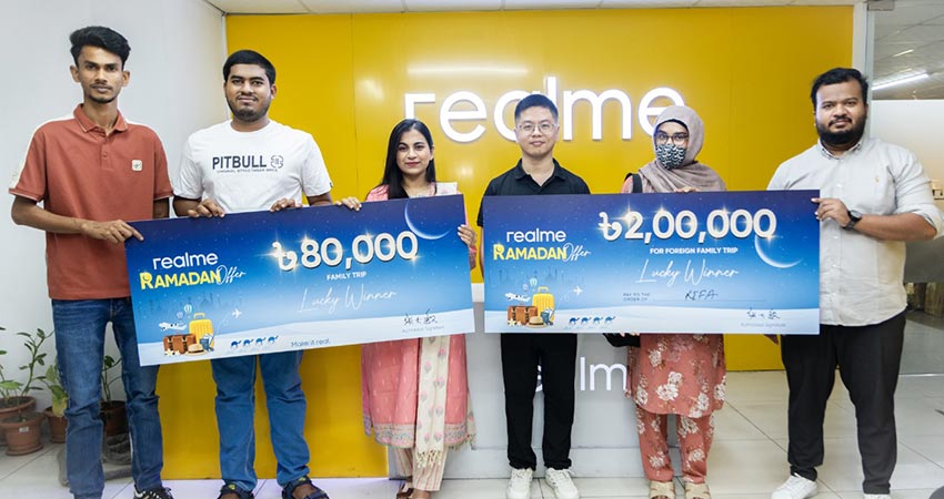 দেশের অন্যতম জনপ্রিয় প্রযুক্তি ব্র্যান্ড রিয়েলমির রমজান ক্যাম্পেইনের বিজয়ীদের মাঝে সম্প্রতি পুরস্কার বিতরণ করা হয়েছে। গ্রাহকদের দেওয়া এসব পুরস্কারের মধ্যে উল্লেখযোগ্য- ১ জনের জন্য ২ লাখ টাকা সমমূল্যের ফ্যামিলিসহ বিদেশ ট্যুর প্যাকেজ এবং ৩ জনের জন্য পৃথক পৃথকভাবে ৮০ হাজার টাকা সমমূল্যের দেশের অভ্যন্তরে ফ্যামিলিসহ ট্যুর প্যাকেজ।