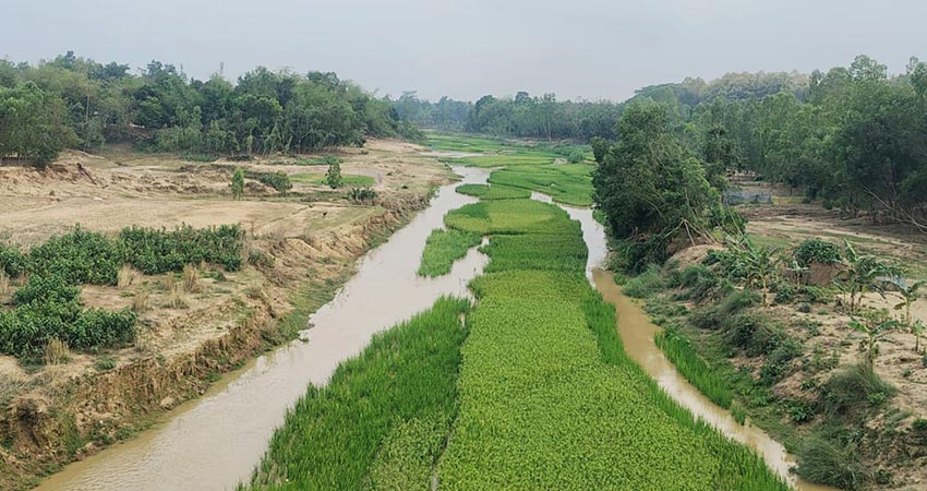 স্থানীয়রা জানান, বর্ষা মৌসুমে এক-দুই মাস এই নদীতে পানি থাকে। বর্ষা মৌসুম শেষ হলে শুকিয়ে যায়। তখন প্রান্তিক কৃষকরা বোরো আবাদের জন্য জায়গা প্রস্তুত করেন। এই নদীর পোড়াগাঁও ইউনিয়নের অংশে বুরুঙ্গা পোড়াবাড়ি, আন্ধারুপাড়া, বাতকুচি ও পলাশীকুড়া এলাকায় নদীর চরে চলতি বোরো মৌসুমে ১০-১৫ জন প্রান্তিক কৃষক প্রায় ১০/১২ একরের মতো জমিতে বোরো ধান চাষ করেছেন। ফলনও বেশ ভালো হয়েছে। এতে বাম্পার ফলনে অধিক লাভের স্বপ্ন বুনছেন নদী তীরবর্তী কৃষকরা।
