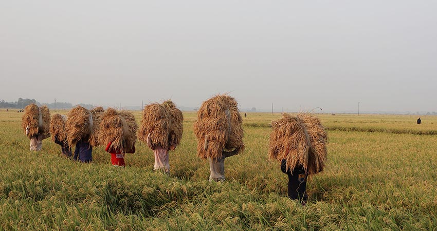ধান কাটার প্রস্তুতির শুরুতেই বৃষ্টিপাত ও ঝড়ো হাওয়ায় কৃষকরা শঙ্কিত হয়ে পড়লেও আঁধার কেটে সেই মেঘাচ্ছন্ন আবহাওয়া অনুকূলে আসায় এখন নাটোরের সিংড়ার চলনবিলের কৃষকদের ঘরে ঘরে ধান কাটা-মাড়াই উৎসব চলছে। স্বপ্নের সোনার ফসল ঘরে তুলতে চলনবিলে ব্যস্ত সময় পার করছেন প্রায় লক্ষাধিক কৃষক। সেই কাজে সহযোগিতা করতে কোমড়ে কাপড় বেঁধে মাঠে নেমেছেন ঘরের বউ-ঝিয়েরাও।