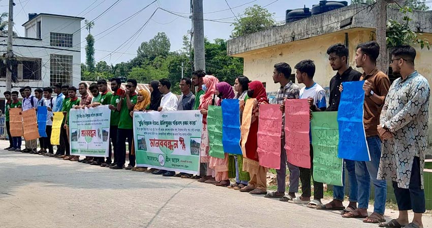 বুড়িতিস্তা নদীর বালু উত্তোলনের প্রতিবাদে মানববন্ধন