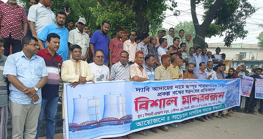 ‘দাবি আদায়ের নামে রূপপুর পারমাণবিক বিদ্যুৎকেন্দ্র নির্মাণ প্রকল্প বন্ধের ষড়যন্ত্রের’ প্রতিবাদে পাবনার ঈশ্বরদীতে ’সচেতন নাগরিক সমাজের’ ব্যানারে মানববন্ধন ও প্রতিবাদ সমাবেশ অনুষ্ঠিত হয়েছে।