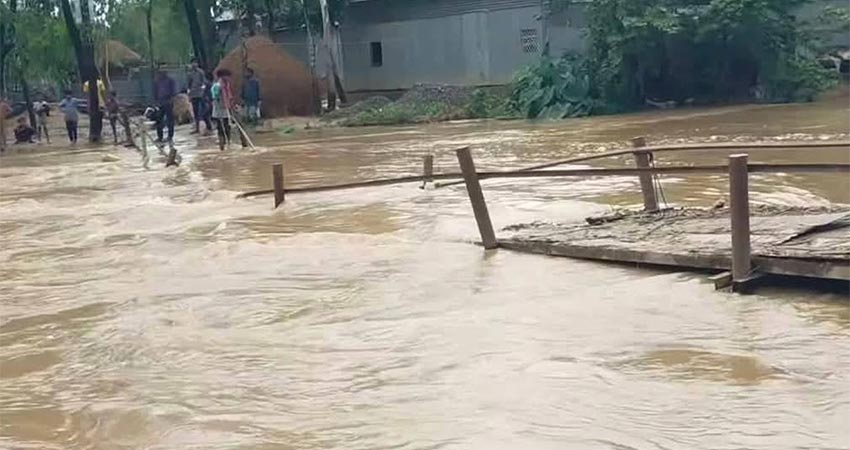 সোমেশ্বরী নদীর পানি বেড়ে গিয়ে নির্মাণাধীন চাপাতলী সেতুর পাশের নিম্নাঞ্চলে প্রবেশ করায় আশপাশের কয়েকটি দোকান ক্ষতিগ্রস্ত হয়েছে।