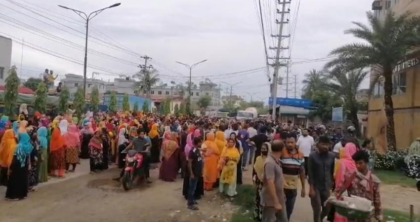 সাভারে তিন মাসের বকেয়া বেতন পরিশোধসহ ঈদ বোনাসের দাবিতে সড়ক অবরোধ করে বিক্ষোভ করেছে একটি তৈরি পোশাক কারখানার পাঁচ শতাধিক শ্রমিক।
