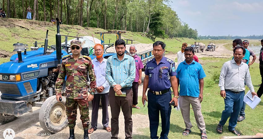 জানা যায়, বাংলাদেশ ভারত সীমান্তের মেইন পিলার ৭৩৯ এর ৪ নম্বর সাব পিলার এলাকা থেকে প্রায় আড়াই কিলোমিটার দক্ষিণে শিবচন্ডি জয়গঞ্জ এলাকায় কিছু অসাধু লোকজন অবৈধভাবে মাটি কেটে পাথর ও বালু উত্তোলন করছিল। এই কাজে নিষিদ্ধ ড্রেজার মেশিন ব্যবহার করা হচ্ছিল। পরে অভিযান চালিয়ে ৮টি ড্রেজার শ্যালো মেশিনের মধ্যে ২টি ড্রেজার শ্যালো মেশিন ও ৪৫ ফুট প্লাস্টিক পাইপ আইনানুগ ব্যবস্থার জন্য উপজেলা প্রশাসনের জিম্মায় নেওয়া হয়। বাকি ৬টি ড্রেজার শ্যালো মেশিন স্থানীয় ইউপি সদস্য তৈয়বুর রহমান ও আইবুল ইসলামের হেফাজতে রাখা হয়।