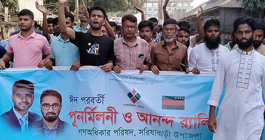 জামালপুরেসরিষাবাড়ীতে গণঅধিকার পরিষদের উদ্যোগে ঈদ পরবর্তী পুনর্মিলনী ও দুর্নীতি-চাঁদাবাজির শোভাযাত্রা মিছিল অনুষ্ঠিত হয়েছে।