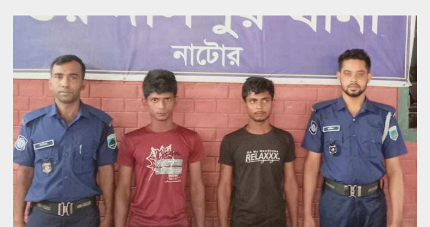 আটককৃতরা হলেন—গুরুদাসপুর উপজেলার বিয়াঘাট গ্রামের মজিবর রহমানের ছেলে মিন্টু (১৮) এবং মো. শাকিল (১৯)।