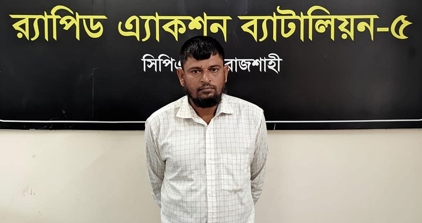 গ্রেপ্তার গোলাম প্রামানিক ওই গ্রামের মৃত আবদুর রহমান প্রামানিকের ছেলে। র‌্যাব-৫ এর রাজশাহীর মোল্লাপাড়া ক্যাম্পের একটি দল তাকে গ্রেপ্তার করে। গতকাল বৃহস্পতিবার দুপুরে এক সংবাদ বিজ্ঞপ্তিতে এ তথ্য জানানো হয়েছে।