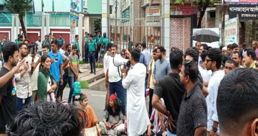 এ সময় তারা মূল ফটকের সামনের সড়কও অবরোধ করে রাখে, ফলে রূপসা থেকে শহরে প্রবেশের পথ বন্ধ হয়ে যায়। এ সময় বিক্ষোভকারীরা বিভিন্ন স্লোগান দিতে থাকেন।
