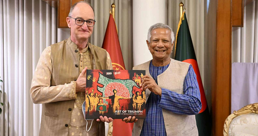 বুধবার (২৫ জুন) রাজধানীর রাষ্ট্রীয় অতিথি ভবন যমুনায় এ সৌজন্য সাক্ষাৎ অনুষ্ঠিত হয়। প্রধান উপদেষ্টার প্রেস উইং থেকে পাঠানো এক সংবাদ বিজ্ঞপ্তিতে এ তথ্য জানানো হয়।