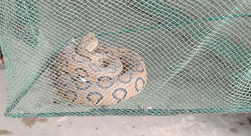রোববার (৬ জুলাই) সকালে উপজেলার সুতালড়ি ইউনিয়নের বালিয়াঘোপা গ্রামসংলগ্ন পদ্মা নদীর চরে মাছ ধরার সময় এক জেলের ‘চায়না দোয়াড়ি’ জালে সাপটি আটকে পড়ে।