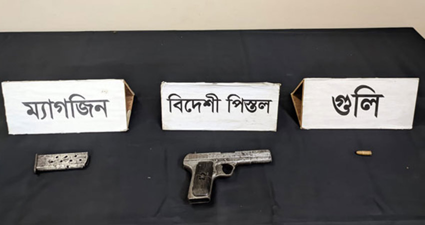 গত শনিবার দিবাগত রাত সাড়ে ১২টার দিকে মহানগরের বোয়ালিয়া থানার টিকাপাড়া এলাকায় অভিযান চালিয়ে পিস্তলটি উদ্ধার করা হয়। পিস্তলের সঙ্গে একটি ম্যাগাজিন ও গুলিও উদ্ধার করা হয়েছে।