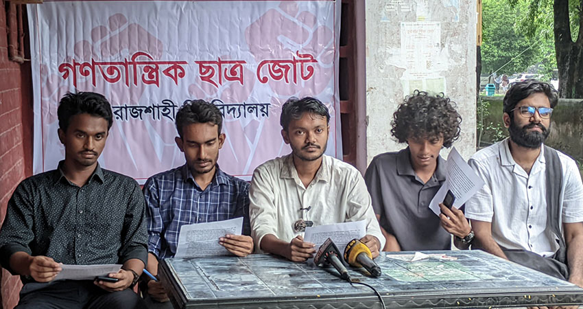 রাজশাহী বিশ্ববিদ্যালয়ের (রাবি) শিক্ষার্থীদের খাদ্য ও আবাসন সংকট নিরসনে পাঁচ দফা দাবি উত্থাপন করেছে শাখা গণতান্ত্রিক ছাত্রজোট। বুধবার বেলা ১২টায় বিশ্ববিদ্যালয়ের পরিবহন মার্কেটে আয়োজিত এক সংবাদ সম্মেলনে তারা এসব দাবি তুলে ধরে।
