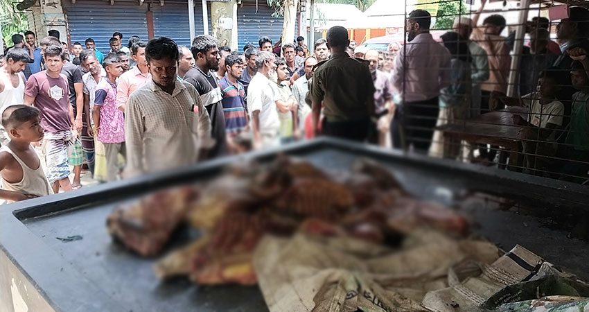 এলাকাবাসী মানিক, মর্তুজা, দেলোয়ার হোসেন ও মহব্বত আলী জানান, কসাই শাহানুর দীর্ঘদিন ধরেই রোগাক্রান্ত, মৃত বা বাসিপঁচা মাংস বিক্রি করে আসছিলেন। তবে তাকে কখনও হাতে-নাতে ধরা সম্ভব হয়নি। শুক্রবার রাত ১১টার দিকে বাজারের মধ্য দিয়ে অটোরিকশায় বস্তায় ভরে মাংস পরিবহন করার সময় সন্দেহ হলে আমরা রিকশাটি থামাতে বলি। তখন কসাইয়ের এক সহযোগী পালিয়ে যায়। বস্তা খুলে পঁচা ও দুর্গন্ধযুক্ত মাংস দেখতে পেয়ে আমরা কসাই শাহানুরকে ডাকি। তিনি এসে দোষ স্বীকার করে ক্ষমা চান এবং মাংস পুঁতে রাখার প্রস্তাব দেন। তবে উত্তেজিত জনতা এতে রাজি না হয়ে তাকে আটক করে। রাত আড়াইটার দিকে ফুলবাড়ী থানা পুলিশ ঘটনাস্থলে পৌঁছালে তাকে পুলিশের হাতে তুলে দেওয়া হয়।