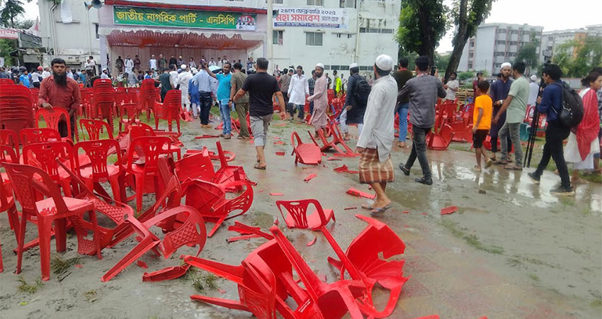 গোপালগঞ্জে জাতীয় নাগরিক পার্টির (এনসিপি) সমাবেশের মঞ্চে হামলা চালিয়েছে নিষিদ্ধ ঘোষিত সংগঠন ছাত্রলীগ। তারা মঞ্চে থাকা সাউন্ড বক্স, মাইক ও চেয়ার ভাঙচুর করেন এবং উপস্থিত এনসিপির নেতাকর্মীদের ওপর হামলা চালান।