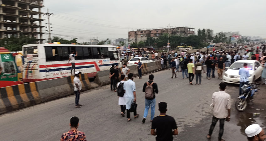 বুধবার, ১৬ জুলাই বিকেলে সাইনবোর্ড মোড় অবরোধ করেন এনসিপির নেতাকর্মীরা। তারা সড়কে বাঁশ ও ইট ফেলে যান চলাচল বন্ধ করে দেন।