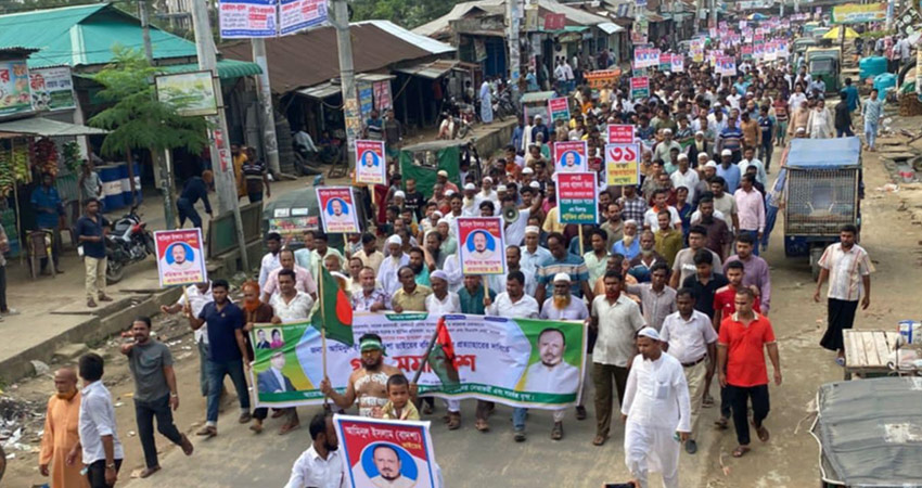 শনিবার (১৯ জুলাই) বিকাল তিনটার দিকে উপজেলা পরিষদের সামনের মাঠে শতশত মানুষ জড়ো হয়। পরে একটি বিক্ষোভ মিছিল শহরের প্রধান সড়ক প্রদক্ষিণ করে ধানহাঠিতে এসে শেষ হয়।