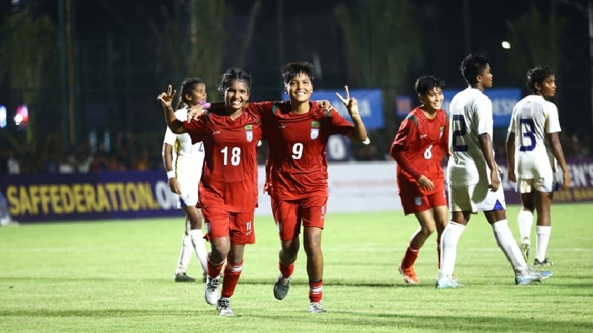 নারী সাফ অনূর্ধ্ব-২০ চ্যাম্পিয়নশিপে নিজেদের পঞ্চম ম্যাচেও জয় পেয়েছে বাংলাদেশ। শনিবার বসুন্ধরা কিংস অ্যারেনার অনুশীলন মাঠে শ্রীলঙ্কাকে ৫-০ গোলে উড়িয়ে দিয়েছে বাংলাদেশ নারী ফুটবল দল। লাল-সবুজদের হয়ে জোড়া গোল করেছেন পূজা রানী, বাকি তিনটি গোল করেছেন কানন রানী বাহাদুর, তৃষ্ণা রানী ও অধিনায়ক আফঈদা খন্দকার প্রান্তি।
