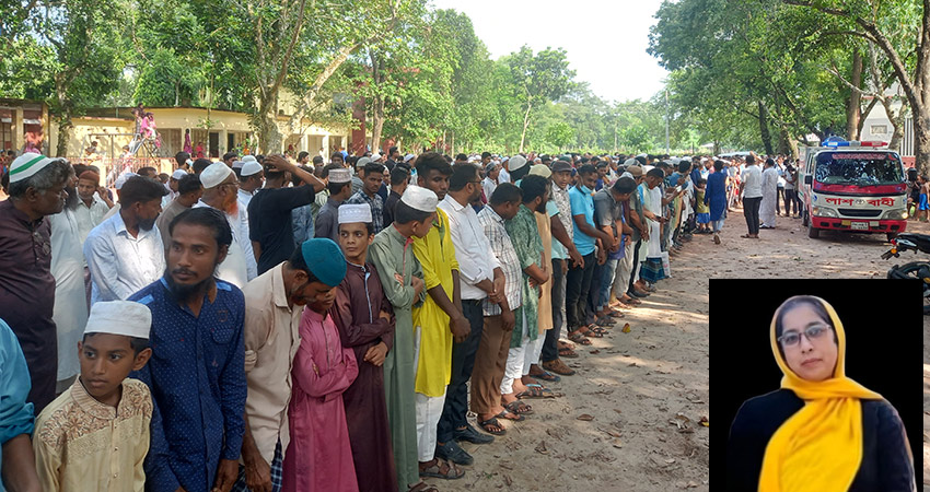 এদিকে জনাজা শুরু হওয়ার আগে তার স্বামী মনসুর হেলাল উপস্থিত শোকার্ত মানুষের উদ্দেশ্যে বলেন, তার স্ত্রী এই এলাকার শিক্ষা বিস্তারের জন্য কাজ করছিলেন এবং বগুলাগাড়ী স্কুল অ্যান্ড কলেজের এডহক কমিটির সভাপতি হয়েছিলেন।