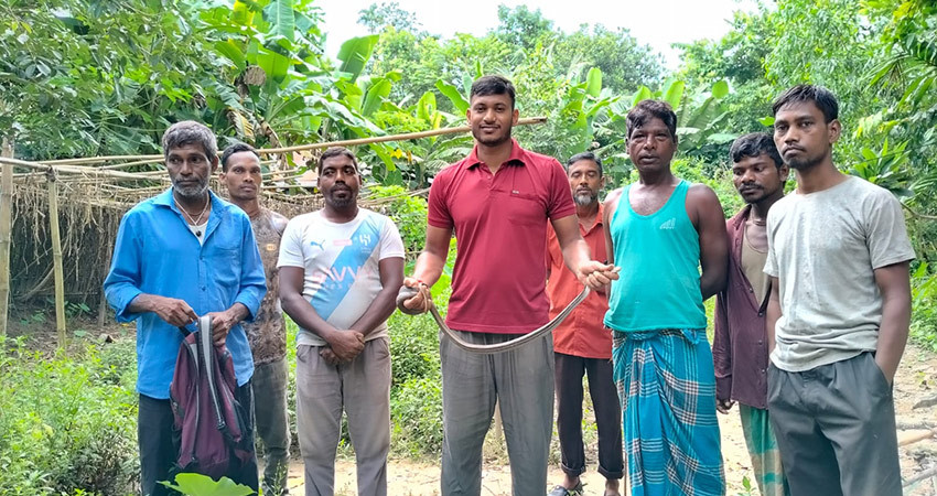 সোমবার (২৮ জুলাই) উপজেলার ফুলবাড়ি চা বাগান থেকে সকাল সাড়ে পাঁচটার দিকে উদ্ধার করেন সাপ-সংরক্ষক এবং ক্রিয়েটিভ কনজারভেশন অ্যালায়েন্সের সংরক্ষণকর্মী চঞ্চল গোয়ালা।