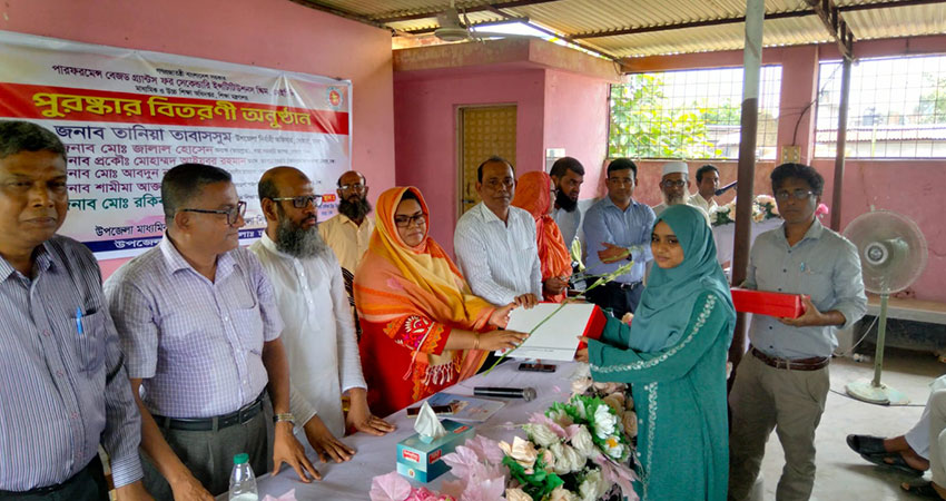 মঙ্গলবার দুপুরে জেলা শিক্ষা অফিস ও উপজেলা মাধ্যমিক শিক্ষা অফিসের আয়োজনে বেগম আয়েশা পাইলট বালিকা উচ্চ বিদ্যালয়ের তৃতীয় তলায় এই পুরস্কার বিতরণ অনুষ্ঠান অনুষ্ঠিত হয়।