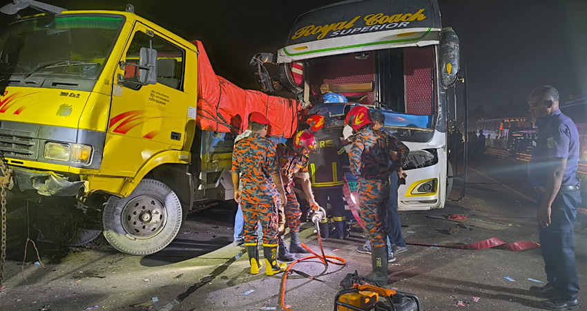 ঢাকা-মাওয়া এক্সপ্রেসওয়েতে মেরামতরত ব্যাটারিবোঝাই ট্রাকের পেছনে কলকাতাগামী যাত্রীবাহী বাস ধাক্কা দিলে অন্তত ৮ জন যাত্রী আহত হয়েছে।