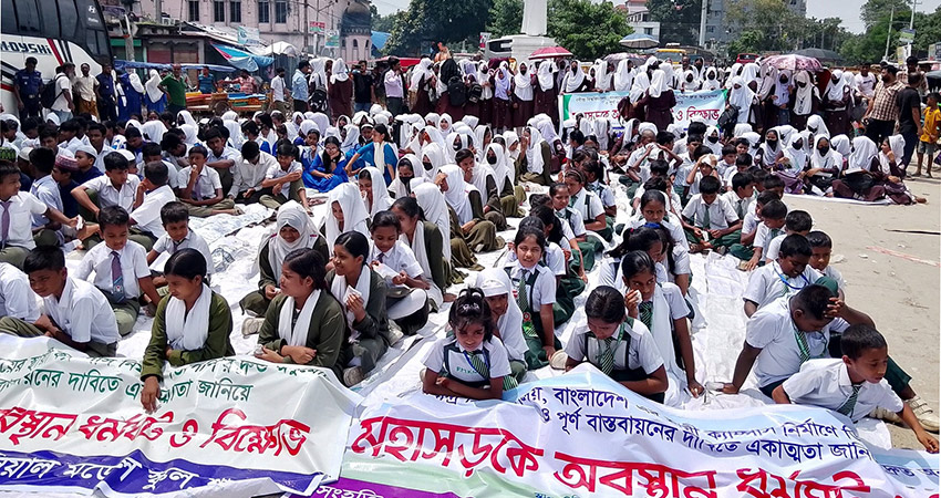 রবীন্দ্র বিশ্ববিদ্যালয়ের স্থায়ী ক্যাম্পাস দ্রুত নির্মাণের দাবিতে সিরাজগঞ্জের শাহজাদপুর উপজেলার বিসিক বাসস্ট্যান্ড এলাকায় বগুড়া-নগরবাড়ি মহাসড়ক অবরোধ করে বিক্ষোভ ও অবস্থান কর্মসূচি পালন করেছে সচেতন নাগরিক ফোরাম।