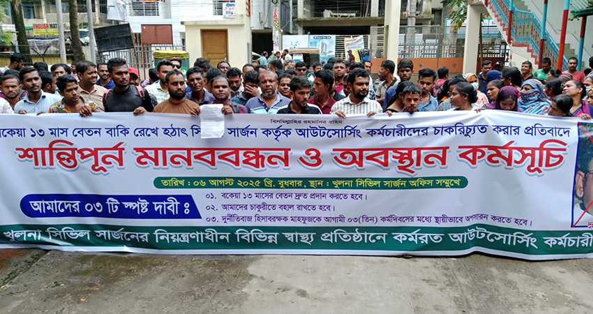 তাদের অভিযোগ, খুলনার সিভিল সার্জন গত ২৯ জুলাই এক চিঠিতে আউট সোর্সিং কর্মচারীদের চাকরি নেই বিধায় তাদের বেতন দিতে তিনি দায়বদ্ধ নন বলে জানান। খুলনা সদর ও ৯ উপজেলায় ২১৪ জন কর্মচারী ১৩ মাস যাবৎ বিনা বেতনে চাকরি করছেন। তারা নিরলসভাবে হাসপাতালের জরুরি বিভাগ, বহি:বিভাগ, ওয়ার্ড, রান্নাঘরসহ বিভিন্ন স্থানে পরিষ্কার-পরিচ্ছন্নতার কাজ করছেন। তারা যে নিরবিচ্ছিন্নভাবে কাজ করছেন, তার স্বপক্ষে থানা স্বাস্থ্য কমপ্লেক্সের ডাক্তাররা প্রত্যয়নপত্র দিয়েছেন।