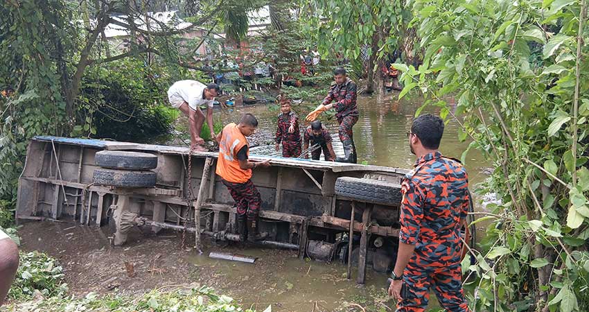 ঝিনাইগাতীতে যাত্রীবাহী বাস পুকুরে পড়ে প্রাণ গেল শিশুর, আহত ২০
