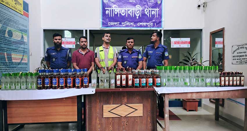 থানা পুলিশ জানায়, চোরাচালানরোধে রাত্রীকালীন নিয়মিত টহলের অংশ হিসেবে ঢাকা-নালিতাবাড়ী মহাসড়ক পথে পুলিশের পিকআপ ভ্যান নালিতাবাড়ী শহরের দিকে আসছিল। রাত সোয়া একটার দিকে ঢাকা বাস স্টেশনের দক্ষিণ পাশে আসা মাত্রই ঢাকাগামী একটি প্রাইভেটকার পুলিশের পিকআপ ভ্যান দেখে রাস্তার পাশে থাকা বাড়ির সামনে কারটি রেখে দ্রুত পেছনের জলাভূমি দিয়ে পালিয়ে যায় জড়িতরা। এসময় পুলিশের সন্দেহ হলে তারা প্রাইভেটকারে তল্লাসী চালায়। তল্লাসীকালে প্রাইভেটকারের পেছনের ছিট ও বেক ডালায় রাখা মোট ১১ বস্তাভর্তি বিভিন্ন ব্র্যান্ডের ভারতীয় মদ জব্দ করা হয়। ওইসব বস্তা খোলে ২৯৭ বোতল ম্যাজিক মোমেন্ট, ইম্পেরেয়িাল ব্লু, ম্যাগডুয়েলস ও রয়েল স্ট্যাগ ব্র্যান্ডের মদ পাওয়া যায়। পরে পুলিশ প্রাইভেটকারসহ ওইসব মদ জব্দ করে থানা হেফাজতে নেয়।