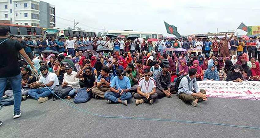 স্থায়ী ক্যাম্পাসের দাবিতে যমুনা সেতু পশ্চিম মহাসড়কের সিরাজগঞ্জের হাটিকুমরুল গোল চত্বর এলাকায় অবরোধ করেন রবীন্দ্র বিশ্ববিদ্যালয়ের শিক্ষার্থীরা।