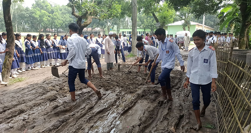 সোমবার দুপুরের বিরতিতে তারা সড়কের কাঁদা সরিয়ে যান চলাচলের জন্য সাময়িকভাবে সড়কটি উপযোগী করেন। এ সময় খানাখন্দে বালি দিয়ে ভরাটও করা হয়। তবে স্থায়ী সমাধানের জন্য সড়কটি পাঁকাকরণের দাবি জানিয়েছেন শিক্ষার্থীসহ স্থানীয়রা।