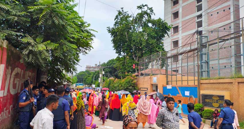 বকেয়া বেতনের দাবিতে শিল্পাঞ্চল সাভারের আশুলিয়ার একটি তৈরী পোশাক কারখানার শ্রমিকরা সড়ক অবরোধ করে বিক্ষোভ করেছেন। পরে পুলিশের আশ্বাসে প্রায় দেড় ঘন্টা পর সড়ক ছেড়ে চলে যান শ্রমিকরা।