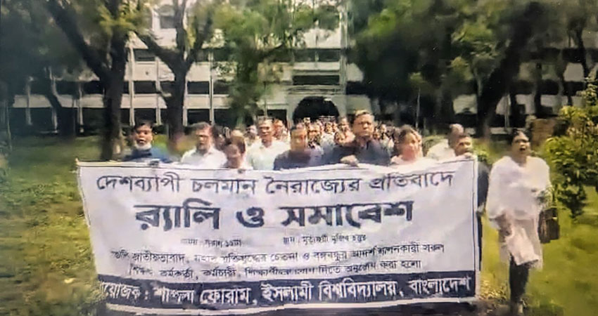 চিঠিতে আরও উল্লেখ করা হয়, “স্বৈরাচারী ফ্যাসিস্ট হাসিনা সরকারকে বিতাড়নের লক্ষ্যে বৈষম্যবিরোধী ছাত্র আন্দোলনে অংশগ্রহণকারী শিক্ষক, কর্মকর্তা, কর্মচারী ও শিক্ষার্থীদের হুমকি, ভয়ভীতি প্রদর্শন, মারমুখী আচরণ, গালিগালাজ, উসকানিমূলক স্লোগান এবং পুলিশি হয়রানি ও গ্রেফতারের ঘটনায় তদন্ত কমিটি গঠন করা হয়। তদন্ত প্রতিবেদনে অভিযুক্ত শিক্ষকদের এসব ঘটনার সঙ্গে প্রত্যক্ষভাবে জড়িত থাকার প্রমাণ পাওয়া গেছে।”