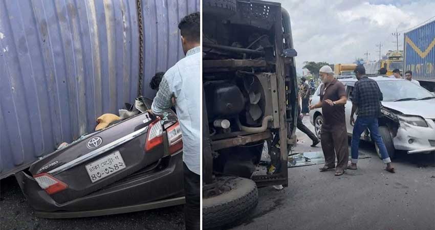 প্রাইভেটকারের ওপর উল্টে গেল কাভার্ডভ্যান, নিহত ৪