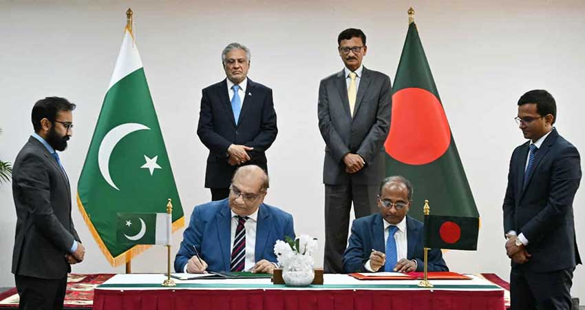 অন্তর্বর্তী সরকারের পররাষ্ট্র উপদেষ্টা মো. তৌহিদ হোসেন এবং ঢাকা সফররত পাকিস্তানের উপ-প্রধানমন্ত্রী ও পররাষ্ট্রমন্ত্রী ইসহাক দারের দ্বিপক্ষীয় বৈঠক শেষে বাংলাদেশ ও পাকিস্তান একটি চুক্তি এবং ৫টি সমঝোতা স্মারক (এমওইউ) সই করেছে।