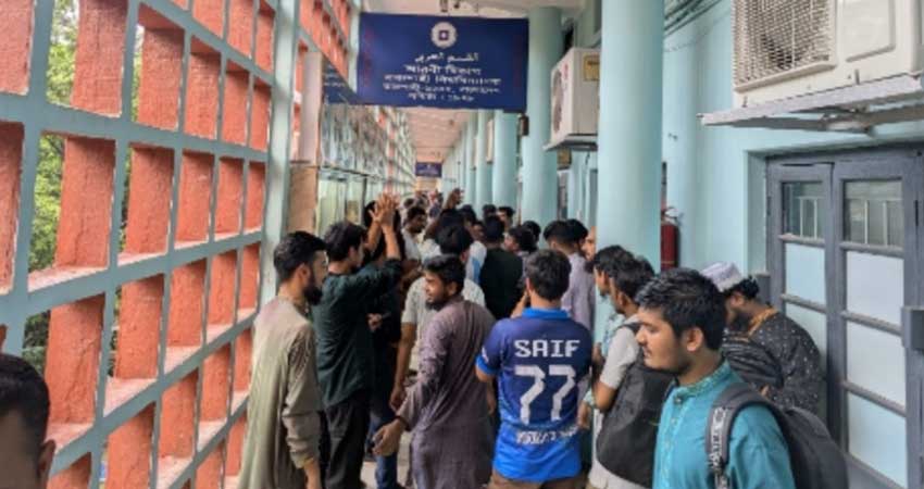 রাজশাহী বিশ্ববিদ্যালয়ের (রাবি) আরবি বিভাগের স্নাতক চতুর্থ বর্ষের প্রথম সেমিস্টারের পরীক্ষা শেষ হওয়ার চারমাস হয়ে গেলেও ফলাফল প্রকাশ করা হয়নি। এজন্য আগামী ১ সপ্তাহের মধ্যে ফলাফল প্রকাশ করাসহ চার দফা দাবিতে বিভাগের অফিস কক্ষ ও প্রধান ফটকে তালা দিয়ে বিক্ষোভ মিছিল করেছে শিক্ষার্থীরা।