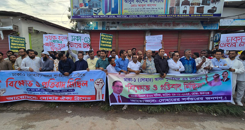 আসন পুনর্বহালের দাবিতে দোহারে বিক্ষোভ ও প্রতিবাদ সভা