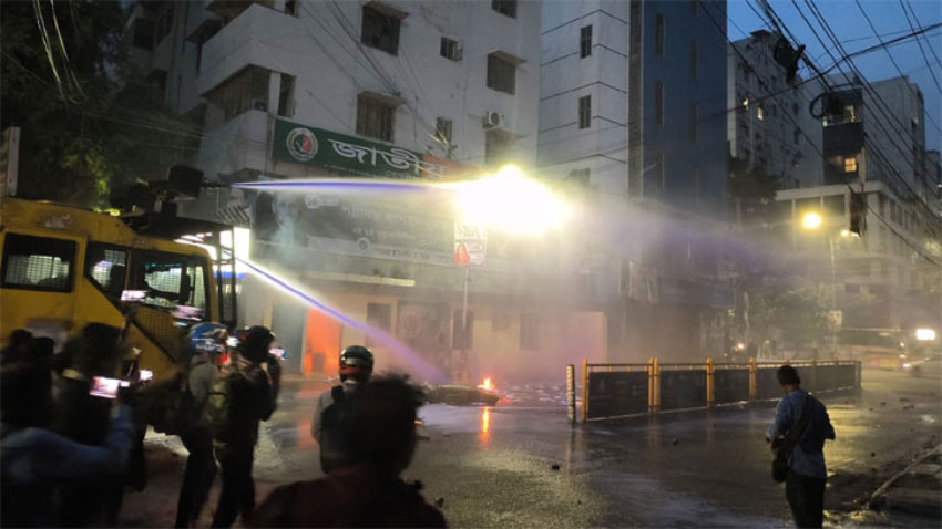 বিক্ষোভ মিছিলের সময় পুলিশকে উদ্দেশ্য করে ইটপাটকেল নিক্ষেপেরও ঘটনা ঘটে।