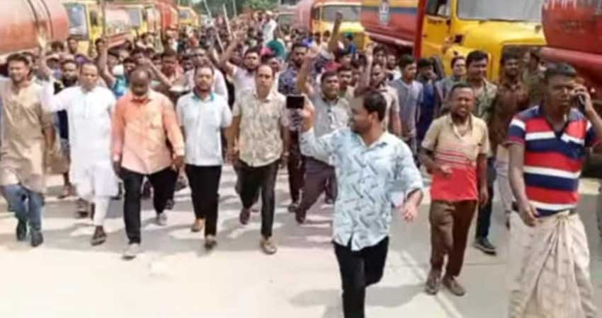 সিরাজগঞ্জের শাহজাদপুরের বাঘাবাড়িতে বিএনপি নেতা-কর্মীদের বিরুদ্ধে চাঁদাবাজি ও ভাঙচুরের অভিযোগে বিক্ষোভ ও সড়ক অবরোধ করেছে উত্তরবঙ্গ ট্যাংক লরি শ্রমিক ইউনিয়ন।