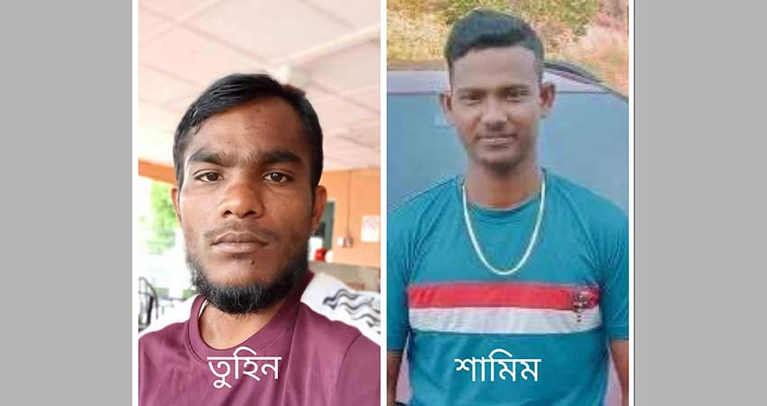 নিহতরা হলেন, গোমস্তাপুর উপজেলার গোমস্তাপুর সদর ইউনিয়নের গোপালনগর গ্রামের শুকুরুদ্দিন কালুর ছেলে ২৫বছর বয়সী তুহিন আলী এবং ওই ইউনিয়নের নসিবন্দি নগর গ্রামের মো. কাবিলের ২৩বছর বয়সী ছেলে মো. শামিম রেজা। তারা দুজনই মালেশিয়ার একটি পাম বাগানে কাজ করতেন।
