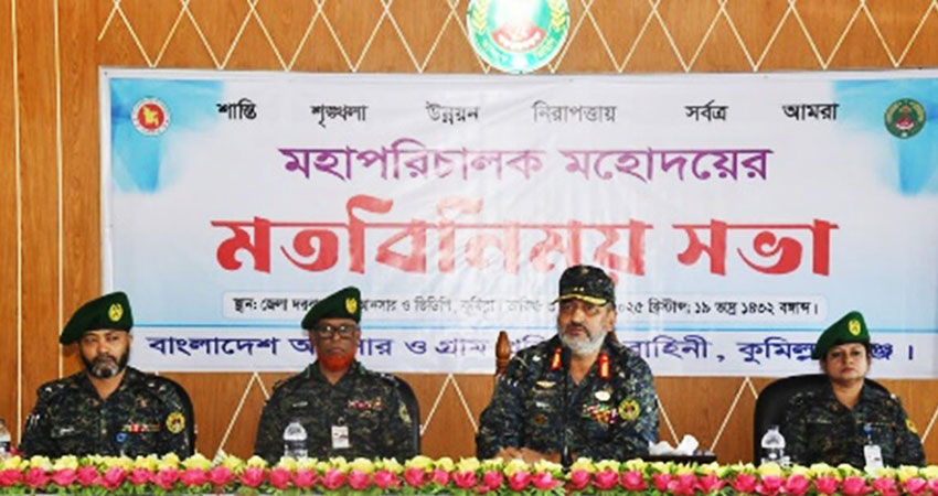 বুধবার (৩ সেপ্টেম্বর) কুমিল্লা রেঞ্জ পরিদর্শন শেষে আয়োজিত দরবারে এ কথা বলেন। এ সময় তিনি সদস্যদের পেশাদারিত্ব ও সক্ষমতা বৃদ্ধির ওপর জোর দেন এবং যুগোপযোগী প্রশিক্ষণ, যোগ্য সদস্য নির্বাচন, ও ক্ষুদ্র উদ্যোক্তা তৈরি করার মাধ্যমে আত্মনির্ভরশীলতা অর্জনের আহ্বান জানান।