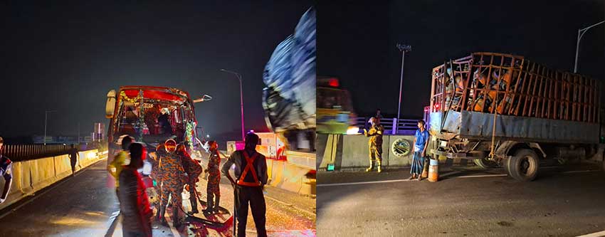ঢাকা-মাওয়া এক্সপ্রেসওয়েতে বাস-ট্রাকের সংঘর্ষ, আহত ৮