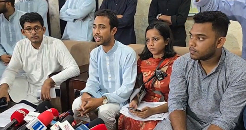 বৃহস্পতিবার বিকেল ৪টার কিছু আগে মওলানা ভাসানী হলের অতিথি কক্ষে আয়োজিত এক সংবাদ সম্মেলনে এই ঘোষণা দেন ছাত্রদল সমর্থিত প্যানেলের সাধারণ সম্পাদক (জিএস) পদপ্রার্থী তানজিলা হোসাইন বৈশাখী।