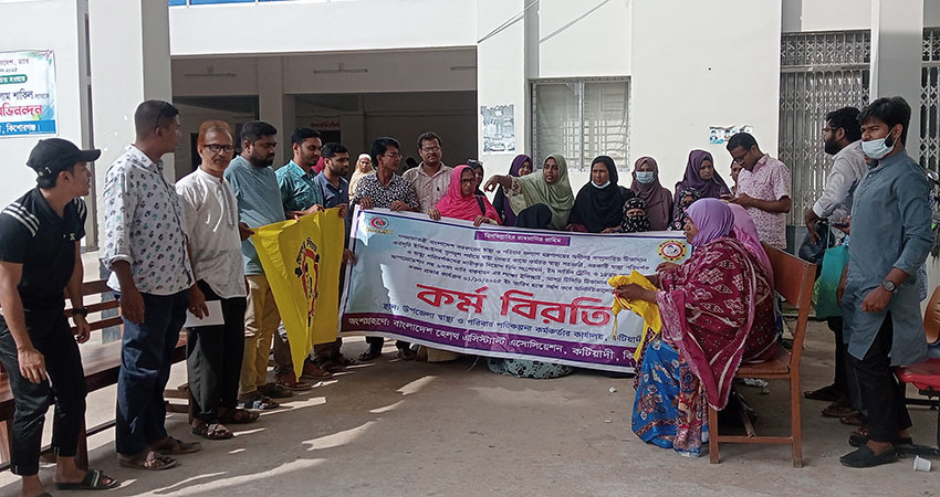 বুধবার (৮ অক্টোবর) দেশের বিভিন্ন স্থানে ঘোষিত কর্মসূচির অংশ হিসেবে কটিয়াদী উপজেলা স্বাস্থ্য কমপ্লেক্সের সামনে বাংলাদেশ হেলথ অ্যাসিস্ট্যান্ট অ্যাসোসিয়েশন কটিয়াদী উপজেলা শাখার সদস্যরা এই কর্মবিরতি পালন করেন।